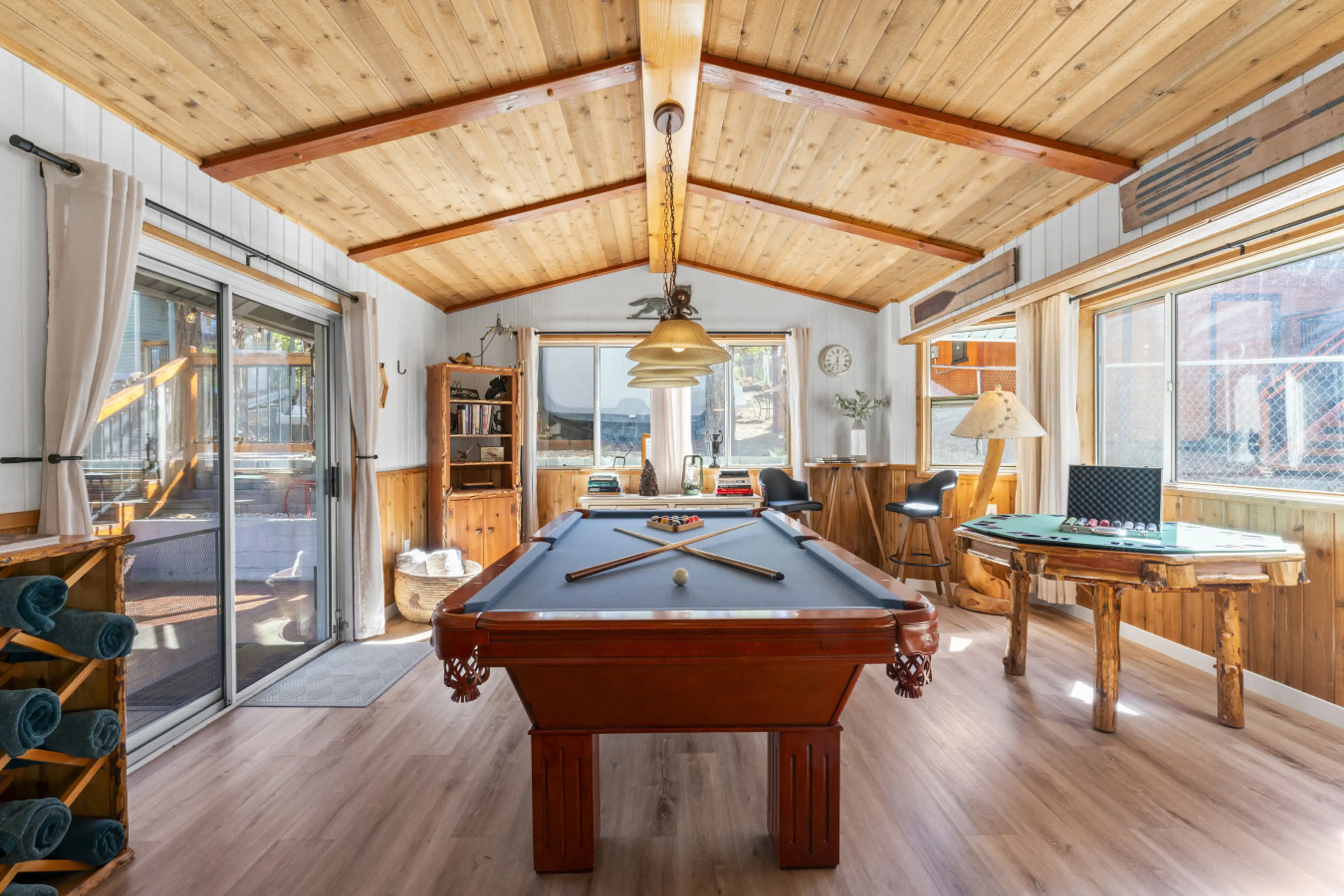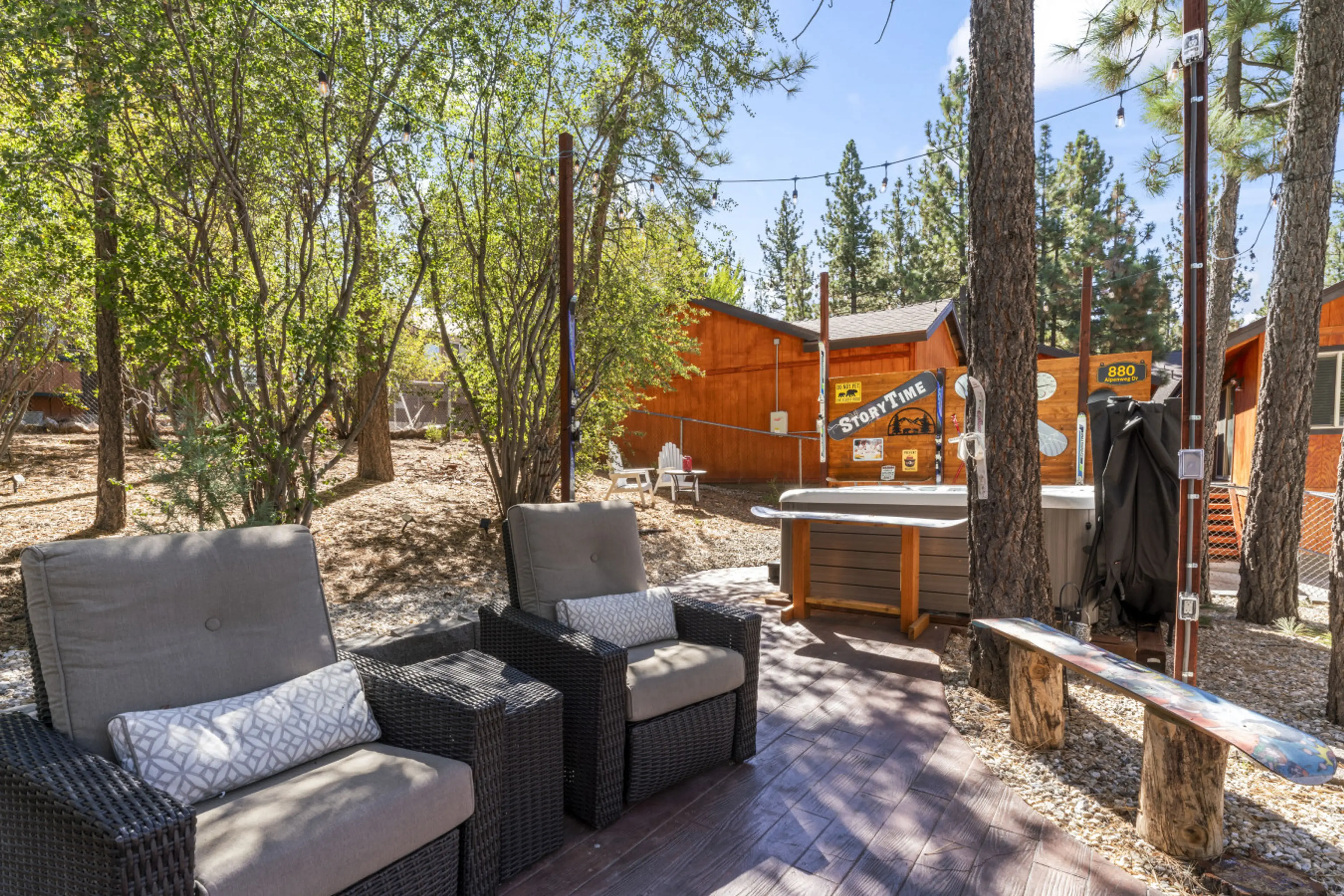 Escape to StoryTime—your ALL SEASONS hideaway in the coveted neighborhood of Fox Farm. Our 4-bed, 2-bath cabin is built for Big Bear bliss: A game room with foosball, ping-pong, air hockey, and board games; a separate pool table and poker room. This is one of Big Bears elite entertainer’s backyard...