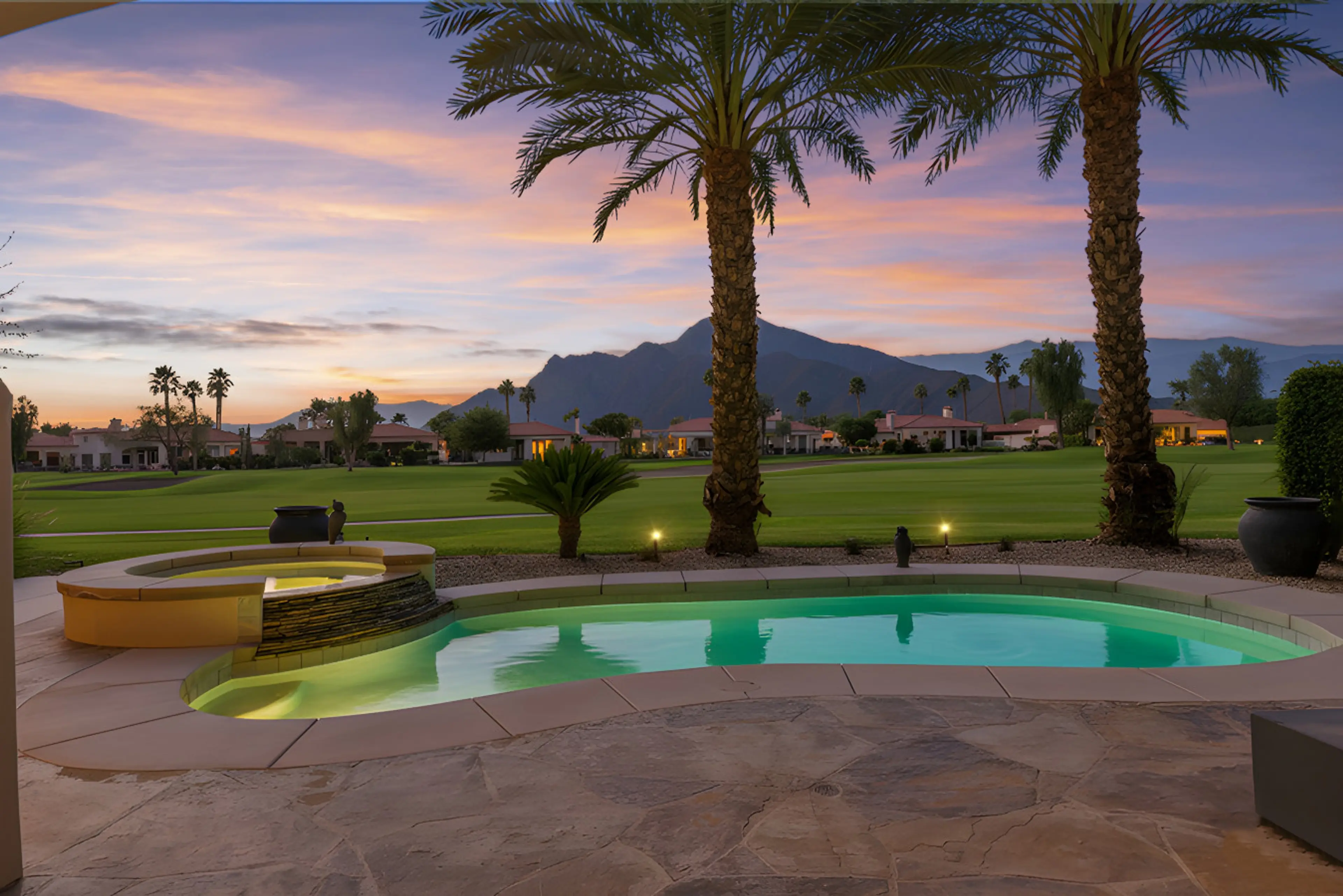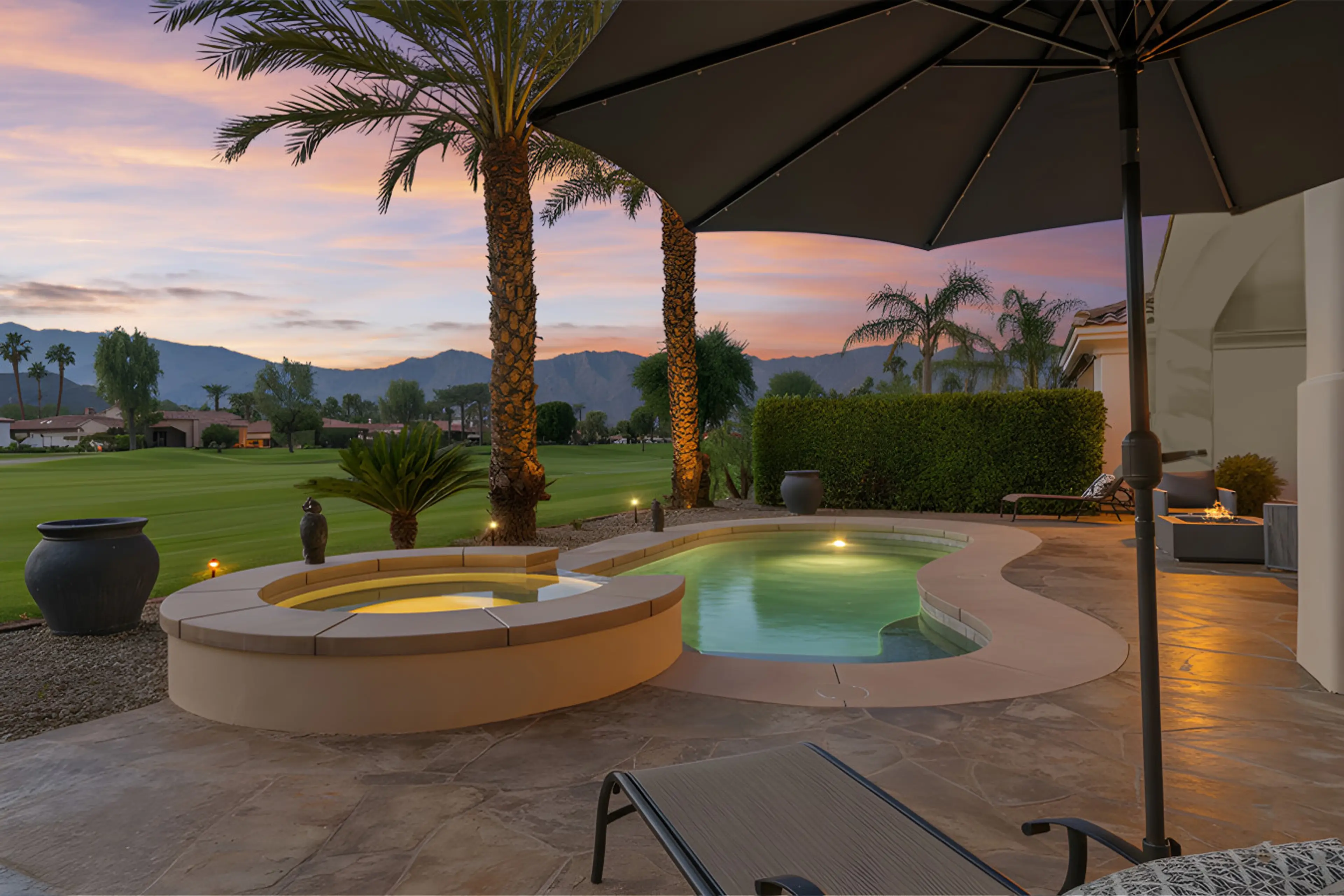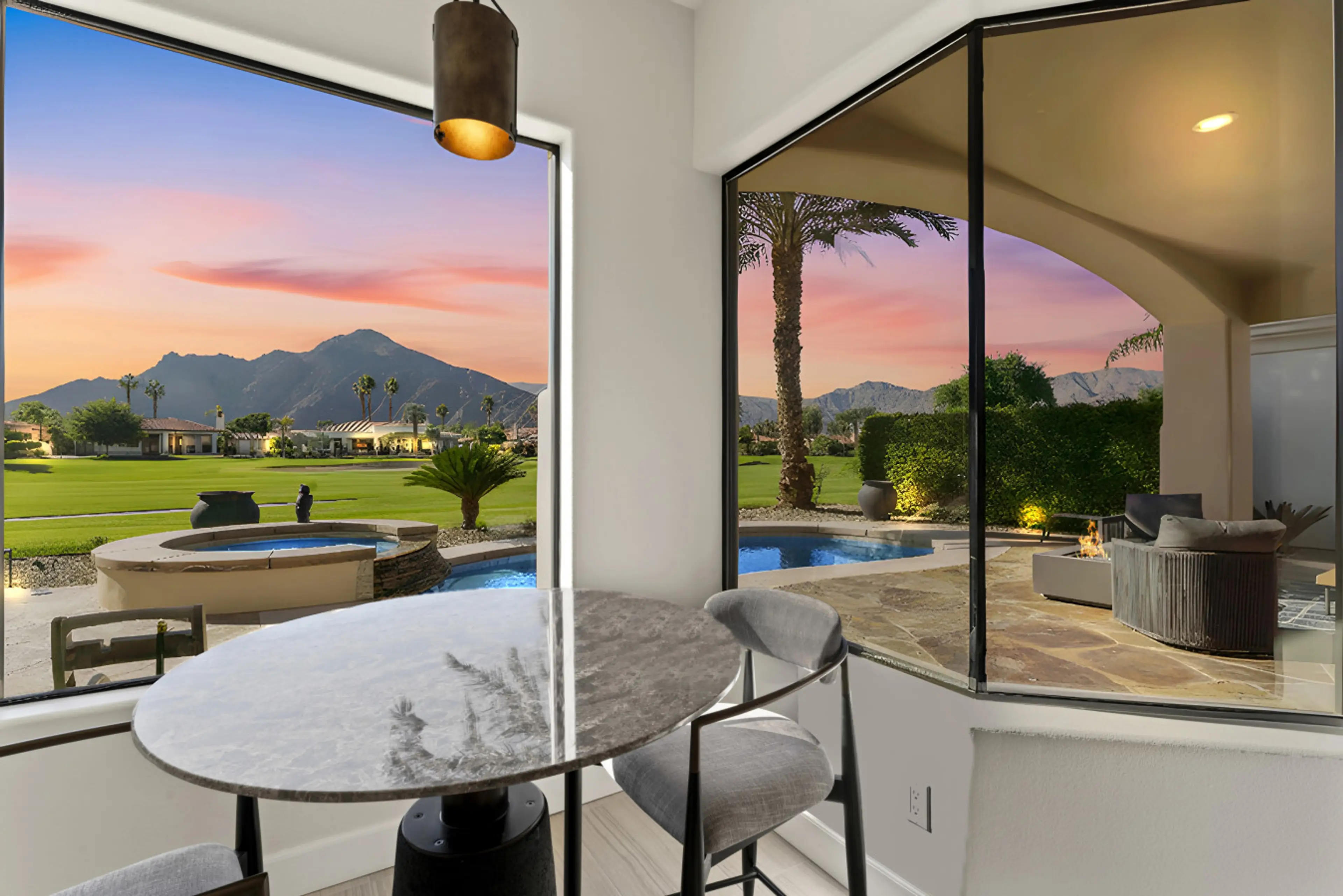 Experience luxury desert living in this highly upscale remodeled, south-facing Citrus Club home with panoramic Santa Rosa mountain & golf course views. Enjoy 3 beds, 3.5 baths, a private office, and detached casita. Features include wide-plank floors, a gourmet KitchenAid kitchen, stylish fireplace,...