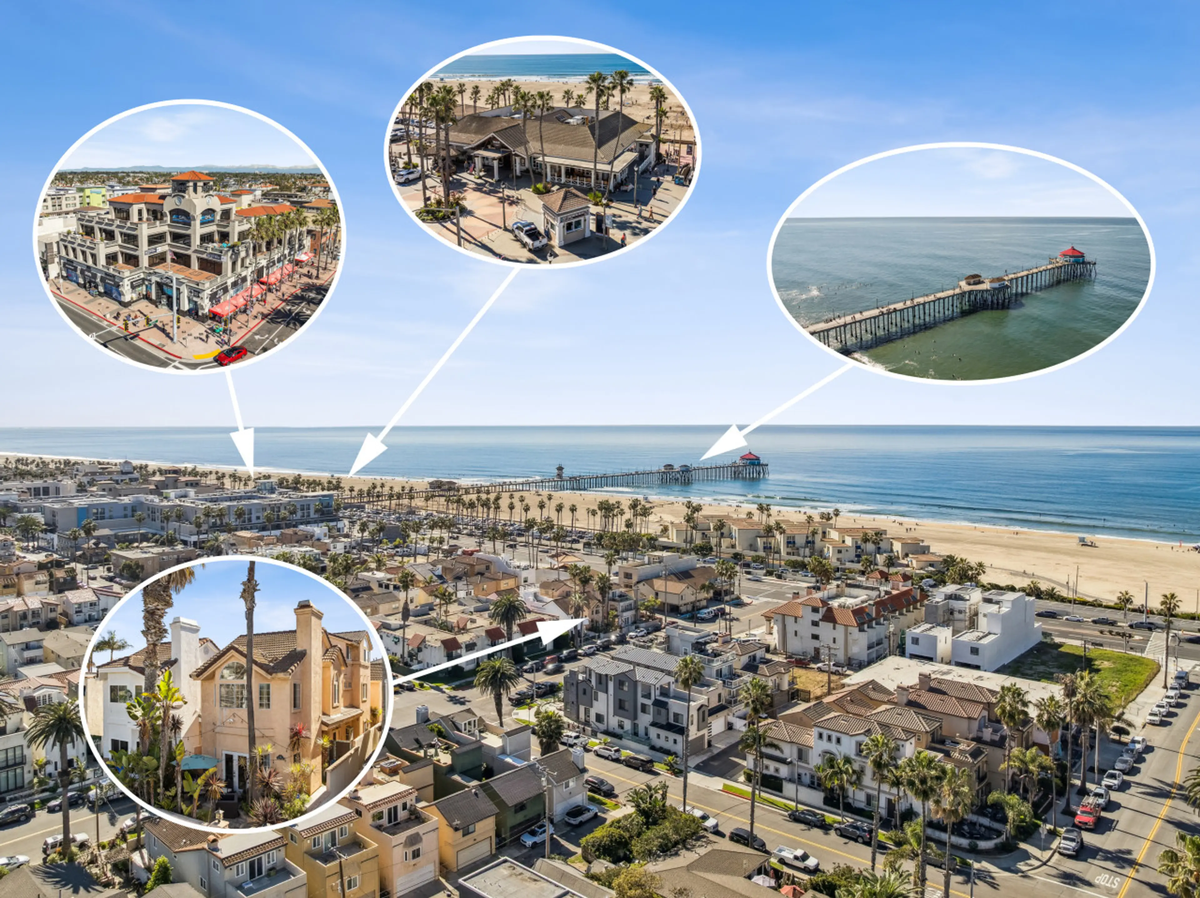 Directly across from the beach in Huntington Beach, this luxury coastal retreat offers ocean views from around the home and highly coveted 3 ensuite baths. Thoughtfully designed with high-end finishes, it delivers an elevated seaside experience. Less than a 5-minute walk to Main Street and the iconi...